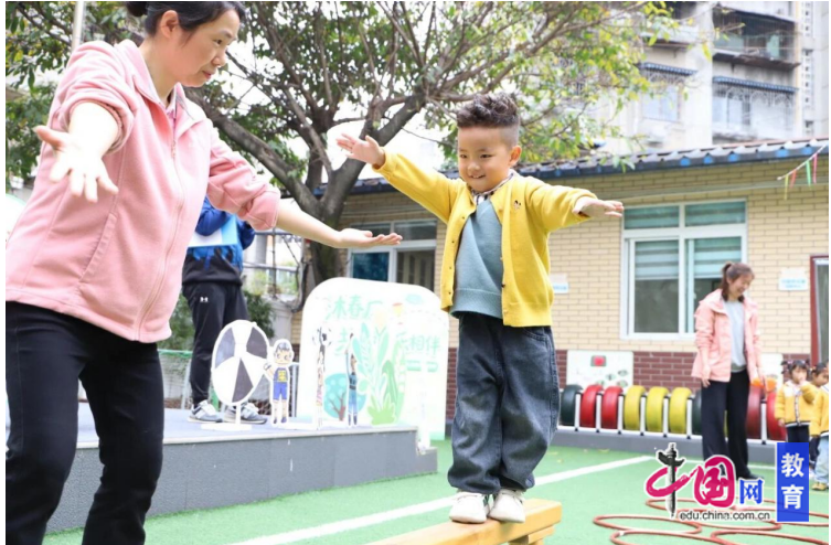 小班以“萌趣初绽”为主题,平衡木等项目让孩子们在尝试中锻炼勇气,每一次稳稳迈步都是成长的印记。