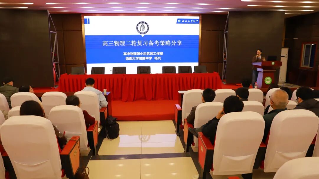 杨兴老师在学术报告厅作了精彩的高三二轮复习经验交流专题讲座。她结合重庆高考真题考点分布,系统解读二轮复习定位与核心目标,明确力学综合、电磁学综合、实验专题等重点板块复习策略,强调要理清高中物理核心知识框架,践行“减法复习、加法得分”,立足教材,强化图像分析与真实情境应用,为高三物理精准复习、高效备考指明了方向。