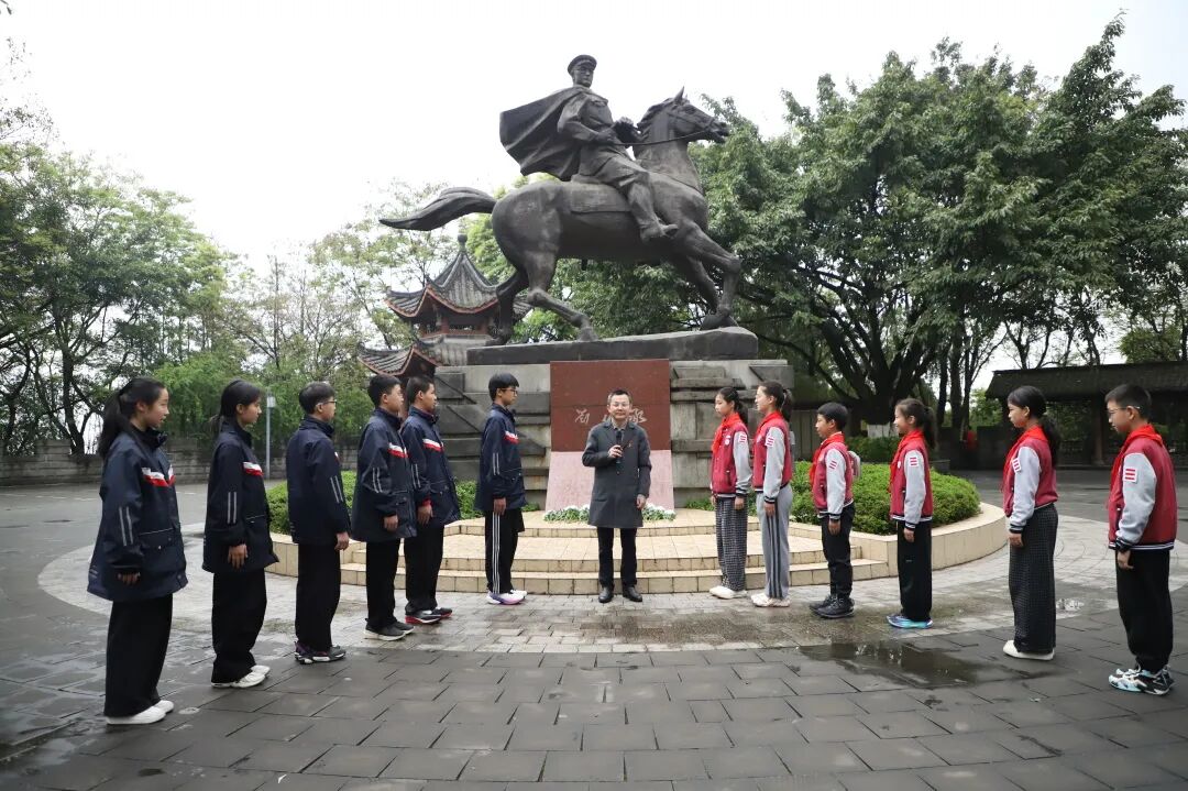 学校党总支书记刘柏梁在元帅雕像前,为师生上了一堂感人至深的微党课。他以“一代军神、一手神枪、一个良友”为主线,讲述刘伯承元帅在重庆的革命实践与家国情怀。他勉励师生要铭记历史、珍惜当下,把对先辈的追思转化为奋发图强的动力。