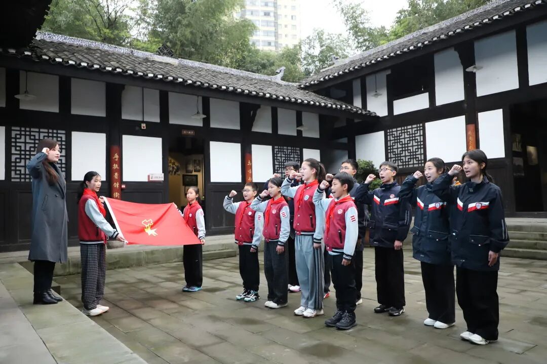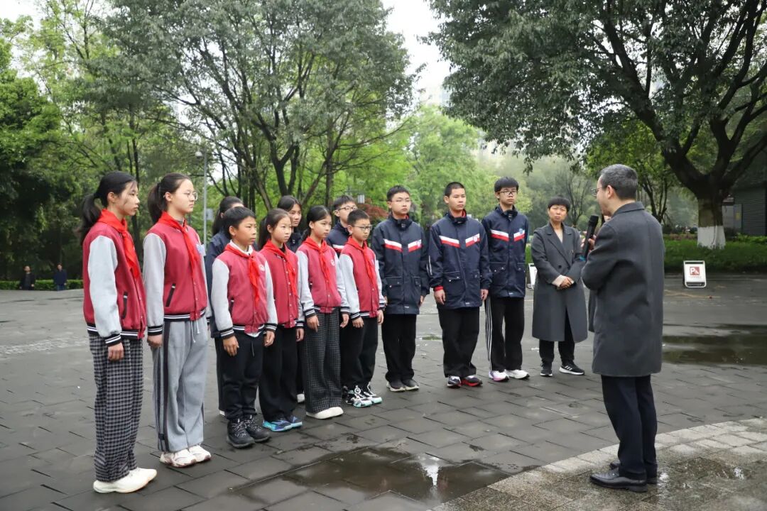 活动最后,大队辅导员带领全体学生重温入队誓词。孩子们高举右拳,面向队旗,齐声宣誓。嘹亮而坚定的誓言是新一代少年对革命先辈的庄严承诺,也是他们立志报国、勇担使命的时代强音。