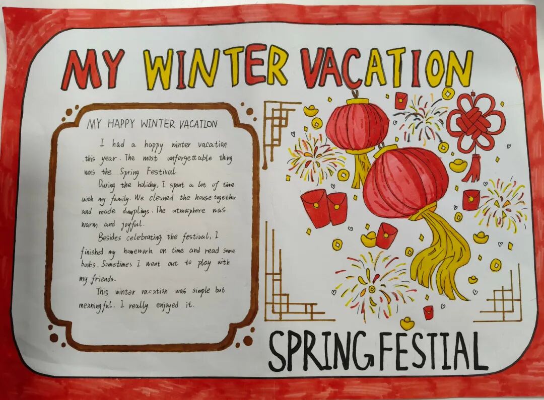 阅读英文故事《海象参加表演》,制作主题小报;完成 My Winter Vacation 假期小报。用英语记录生活、展现创意,在阅读与创作中提升语言能力,尽显少年风采。