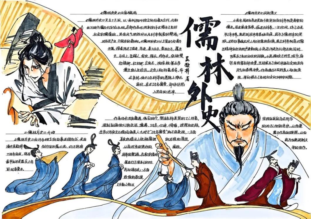 七中沙滨学子围绕《儒林外史》名著研读与唐诗经典赏析展开创作,摘抄经典片段、撰写读后感、解读唐诗意境,笔墨间尽显语文素养与深厚文化积淀,每一份小报都书香四溢、底蕴绵长。