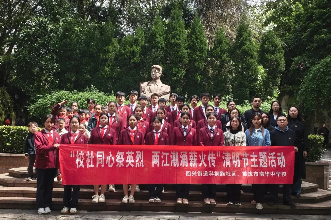 春风拂翠柏,清明祭忠魂。为缅怀革命先烈、传承红色基因,积极响应两江新区“用好春秋假,上好实践课”育人导向,2026年4月3日上午,重庆市南华中学校联合两江新区科桐路社区,在碧津公园王朴烈士雕像前,共同开展“校社同心祭英烈 两江潮涌薪火传”清明节主题教育暨校社联动实践教育活动。