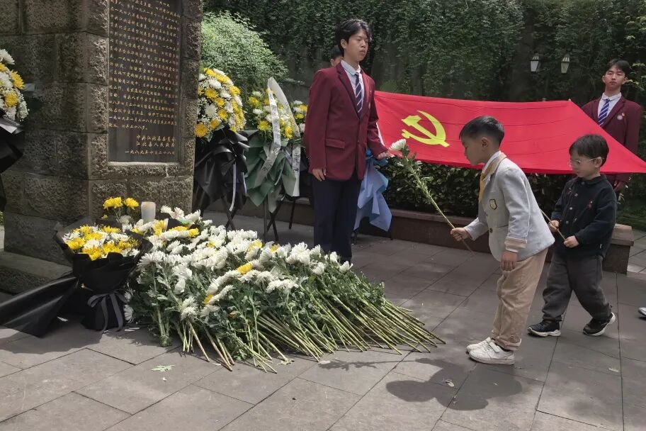 字字铿锵、句句动情,英雄故事穿越时空,深深打动在场每一位参与者。全体人员肃立默哀,向烈士雕像敬献鲜花,以最朴素的方式寄托哀思、表达敬意。