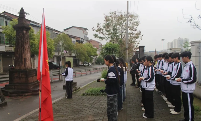 4月2日,重庆长寿葛兰中学48名师生前往陈燮烈士纪念碑,开展“缅怀革命先烈,传承红色基因,争做时代新人”清明祭扫活动,纪念陈燮烈士牺牲100周年。
