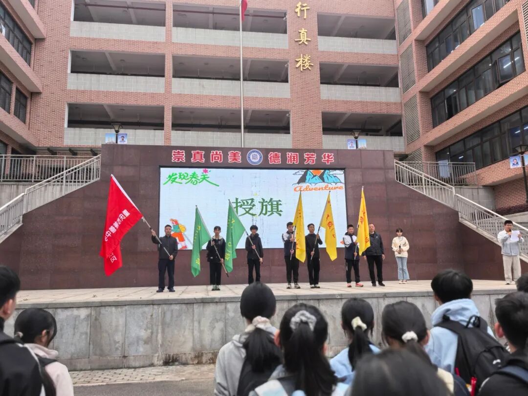 清晨,全体师生精神抖擞齐聚运动场。杨建军副校长在出征仪式上作动员讲话,强调“行走的课堂”对锤炼意志的重要意义;随后李志余校长将象征责任与使命的远足旗帜郑重授予师生代表。随着出发指令响起各班级队伍依次有序启程,同学们的欢呼声瞬间点燃了春日的激情。