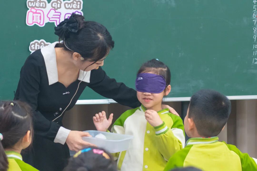 福宁校区王亚梅老师执教一年级《气味告诉我们》,她巧妙设计闻、辨、说系列趣味活动,引导学生在沉浸式感官体验中探索气味奥秘,有效激发了低段学生的科学好奇心。