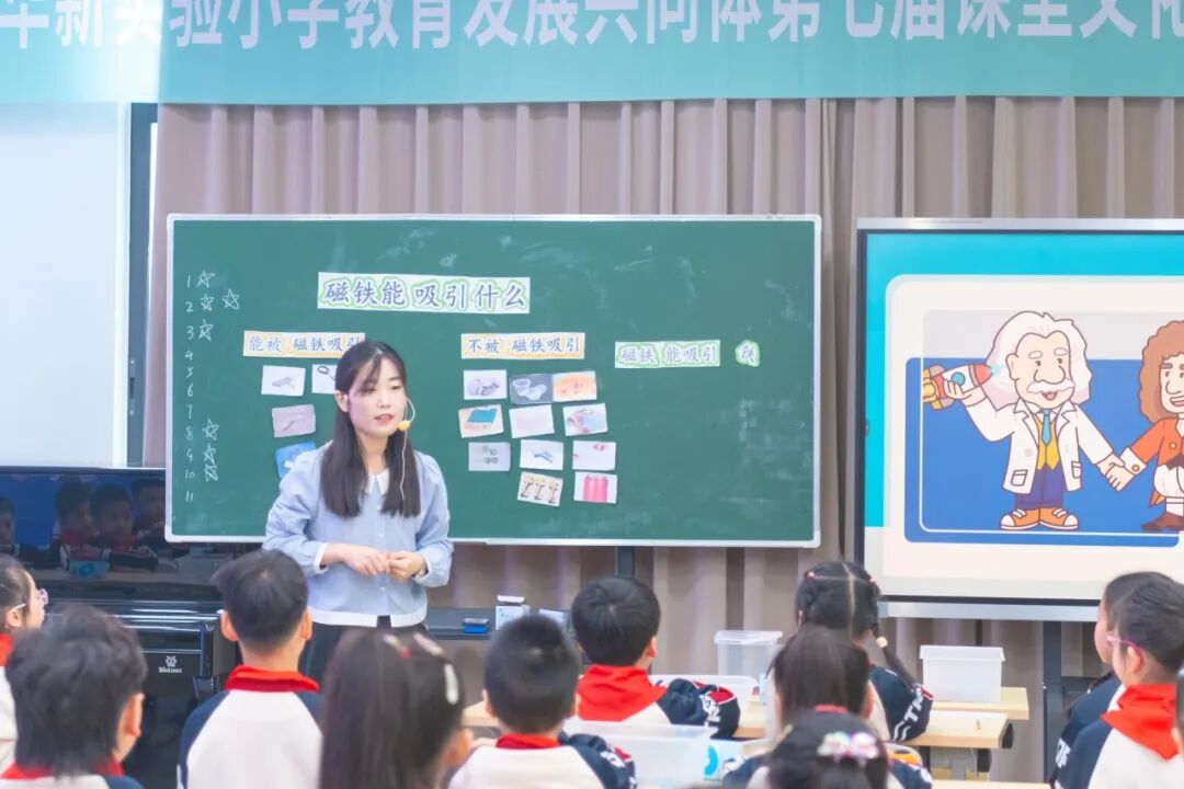 福宁校区王媛颖老师在二年级《磁铁》一课中,提供多样金属材料,引导学生在动手测试与分类记录中自主发现磁铁特性,探究过程逻辑清晰,思维训练扎实。