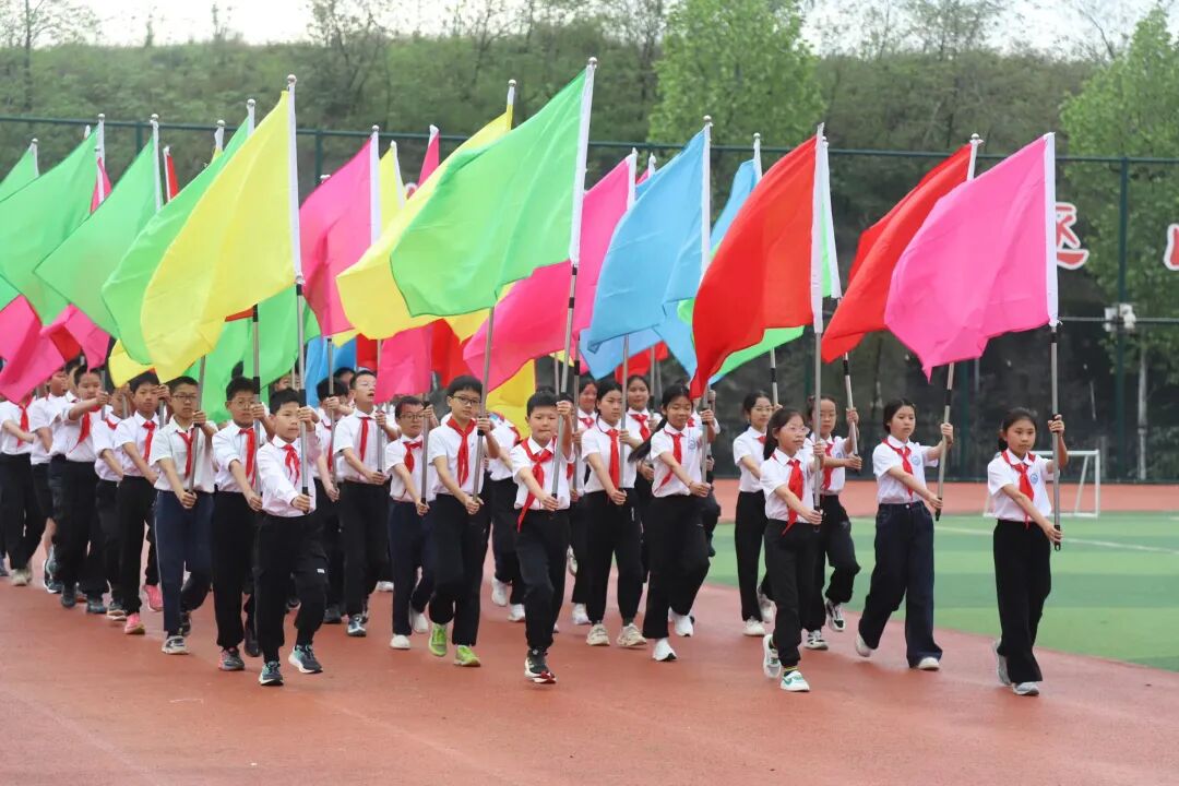 各班方阵精神抖擞,身着统一服饰,喊着铿锵口号依次亮相,展现出少年儿童朝气蓬勃、心系祖国的精神风貌,为运动会拉开精彩序幕。