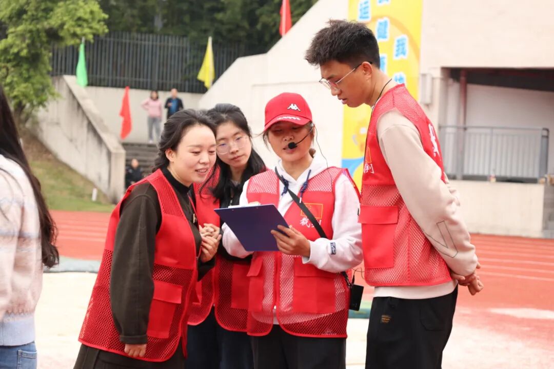 赛场上运动员们斗志昂扬,赛场边一群身着红马甲的守护者也在默默坚守。他们以专业执裁维护公平,以细心值守守护安全,以严谨服务保障秩序,用责任与担当为健康第一理念筑牢坚实屏障,为校园体育高质量开展保驾护航。