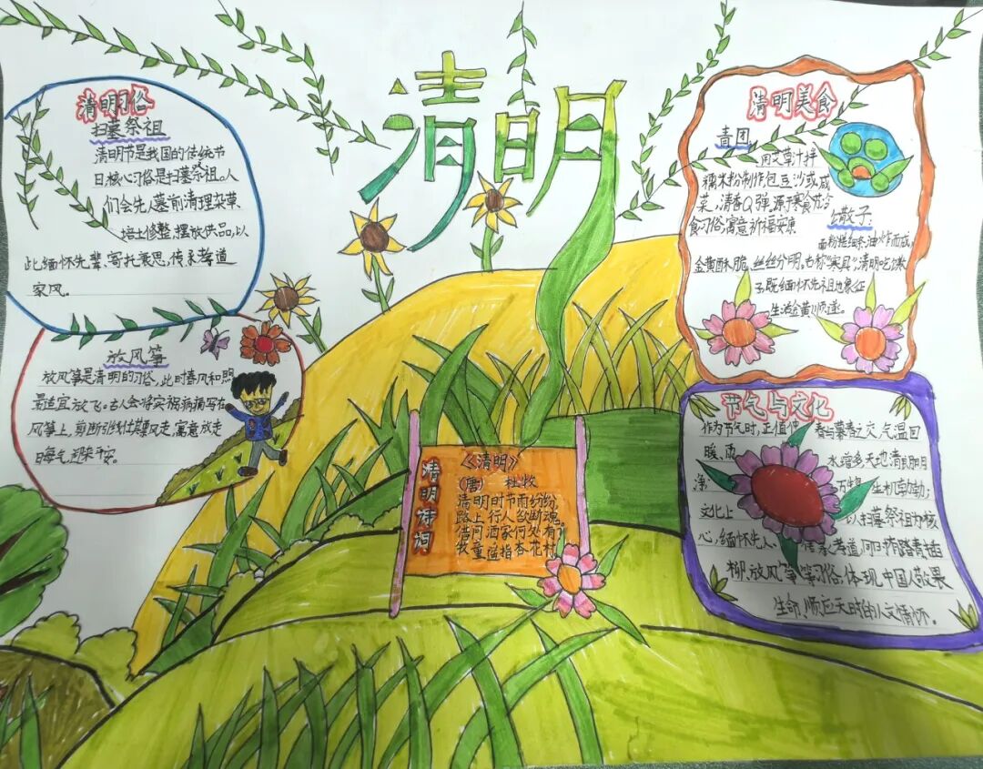 在阳光明媚的四月里,走进生机勃勃的大自然,踏着绿油油的青草,踩着软绵绵的春泥,嗅着沁人心脾的花香,放一只风筝飞上蓝天,和“春姑娘”来一次亲密的约会。活动中,家长为孩子讲述英烈小故事,让学生体会幸福生活来之不易。队员们用照片、绘画记录踏青瞬间,以绿色文明方式缅怀先烈。