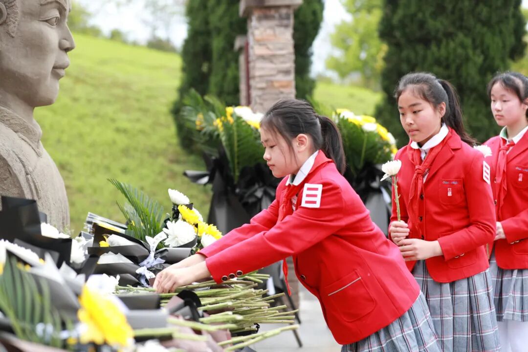 默哀、敬献菊花、高唱队歌、重温入队誓词……少先队员们用一颗颗纯真的心,向英烈表达最深的敬意和无尽的哀思。