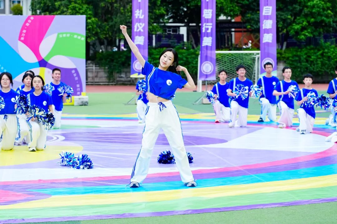 少年意气,如风展翼;青春活力,灼灼其华。《快乐小马》跳出青春活力,《Push 舞动青春》点燃全场热情,《小城夏天》勾勒清新美好,《Zoo》尽显童真童趣。整齐利落的动作,饱满昂扬的状态,学子们化身“能量超人”,诠释着向阳生长的蓬勃力量。