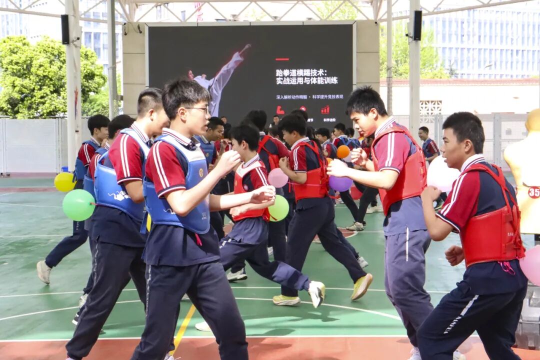 赛场上,各参赛教师各展所长,将飞盘、跆拳道、匹克球、击剑、腰旗橄榄球、棒球等新兴体育项目融入课堂。生动的动作示范、有序的分组协作、趣味的互动游戏与激烈的对抗展示,充分践行了 “以学生为中心”的教学理念。