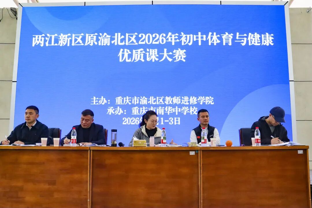 春风润教苑,赛课促成长。近日,重庆市两江新区(原渝北区)2026年初中体育与健康优质课大赛决赛在重庆市南华中学校顺利落下帷幕。全区优秀体育教师齐聚南华,以匠心打磨精品课堂,用活力点燃热血赛场,共同打造了一场高质量的体育教学盛宴。