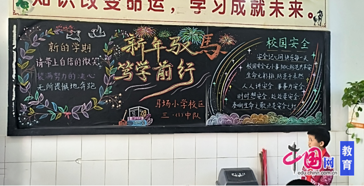 该中队“新年驭马,笃学前行”主题黑板报由学生自主完成,图文并茂、色彩明快。朱茂林自豪地说:“每一处布置都凝聚着老师的用心,每一份作品都见证着我们的进步,这里是我们充满爱与力量的家园。”教室前方的“勤学守纪,积极进取,乘风破浪,逐梦远方,不负时光,快乐成长”班级口号,更是他们精神风貌的生动写照。