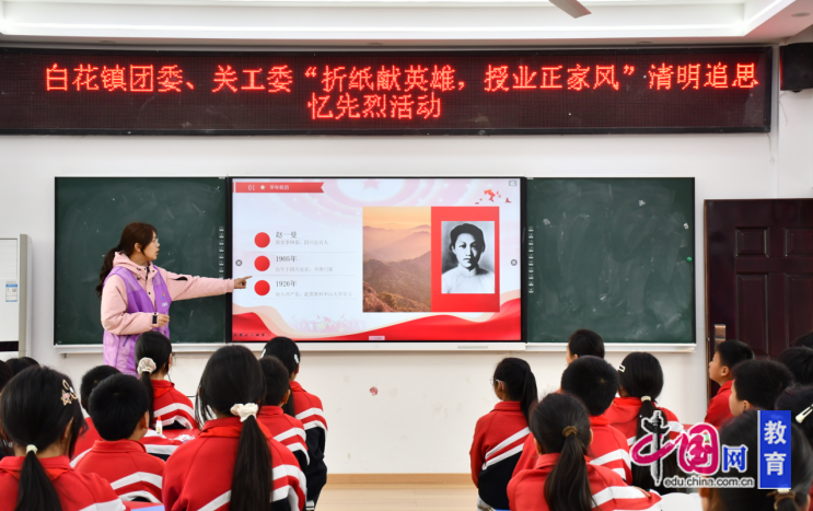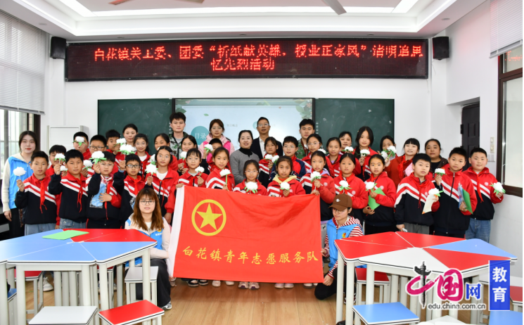 为弘扬爱国主义精神,传承红色基因,同时加强青少年毒品预防教育,近日,宜宾市翠屏区白花镇关工委、镇团委、社会治理办等部门联合走进宜宾市一曼小学校,开展“折纸献英雄,授业正家风”清明追思忆先烈活动,并同步进行禁毒宣传教育。