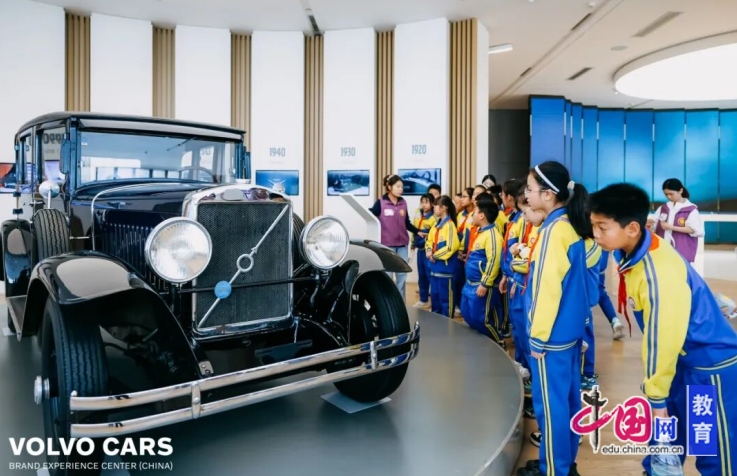 走出生产车间,同学们走进品牌展厅,吉利学院的大学生志愿者以热情专业的讲解,带领大家开启了一场汽车文化与科技知识的探索之旅。从沃尔沃品牌的百年诞生故事,到中央计算平台、高效引擎、全产业链碳排放等专业知识,志愿者们通过生动的模型展示和动画演示,将晦涩的专业名词变得通俗易懂,让孩子们在聆听中了解汽车产业的发展历程与科技革新。