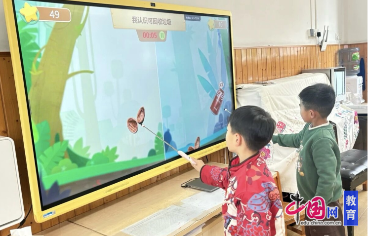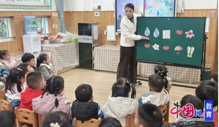 大班社会课上,孩子们化身“环保卫士”,在“会说话的垃圾桶”游戏中学会垃圾分类;中班语言课上,童声朗诵自创春之诗句,将万物生长的韵律藏于心间;小班课堂里,老师以科技图谱结合童谣,带领孩子解锁春雨的秘密。