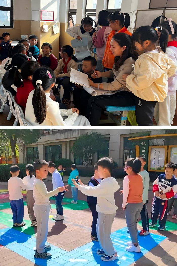 合肥市建平实验小学将15分钟拆解为精准的“三段式”:前2分钟,孩子们有序放松,为活力释放做好准备;核心10分钟,“老鹰捉小鸡”的追逐声、跳绳接力赛的加油声此起彼伏,纸藤蹴鞠、趣味障碍跑让孩子们尽情挥洒汗水,日均步数不断提升,心肺功能有效强化;最后3分钟,深呼吸操、正念冥想让奔跑的身影慢慢平静,孩子们凝神静气,为下一堂课做好专注准备。孩子们更是课间的“小主人”,校级“校园观察员”持证巡查,年级“行规督察员”值守走廊,班级“游戏小组长”牵头组织活动,文明礼仪卡、苹果卡等特色奖励,让孩子们在自主管理中学会担当、懂得协作。
