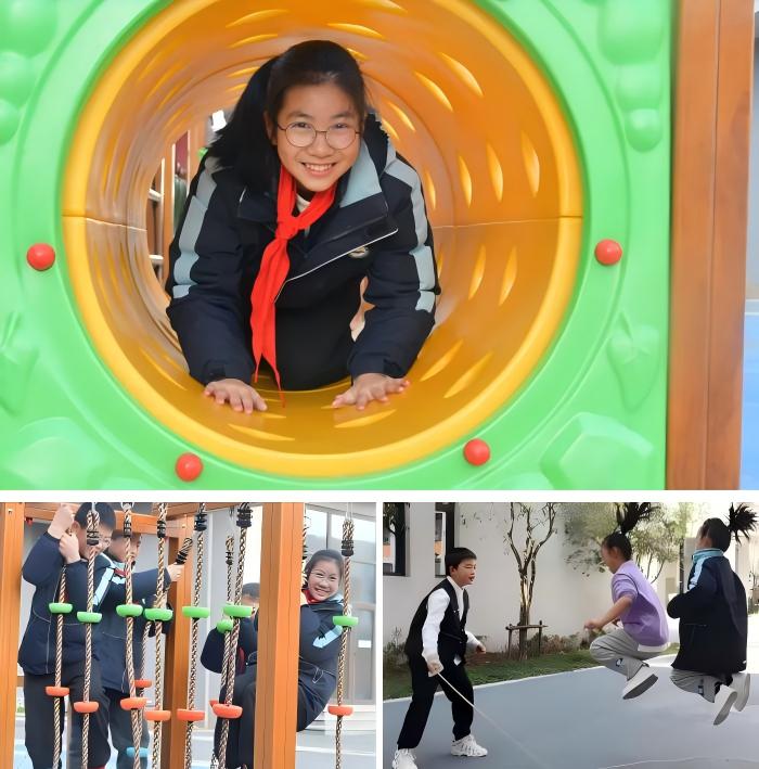 合肥明珠教育集团明珠小学的校园里,地面变身“趣味知识场”“体验长征路”让孩子们在跳跃中感悟红色精神,“寻节气足迹”让二十四节气文化在玩乐中浸润心灵,户外木质游乐场里,孩子们攀爬、嬉戏、挑战自我,走廊门前的主题游戏贴,让孩子们走出教室就能开启快乐时光,真正实现“学中玩、玩中学”。