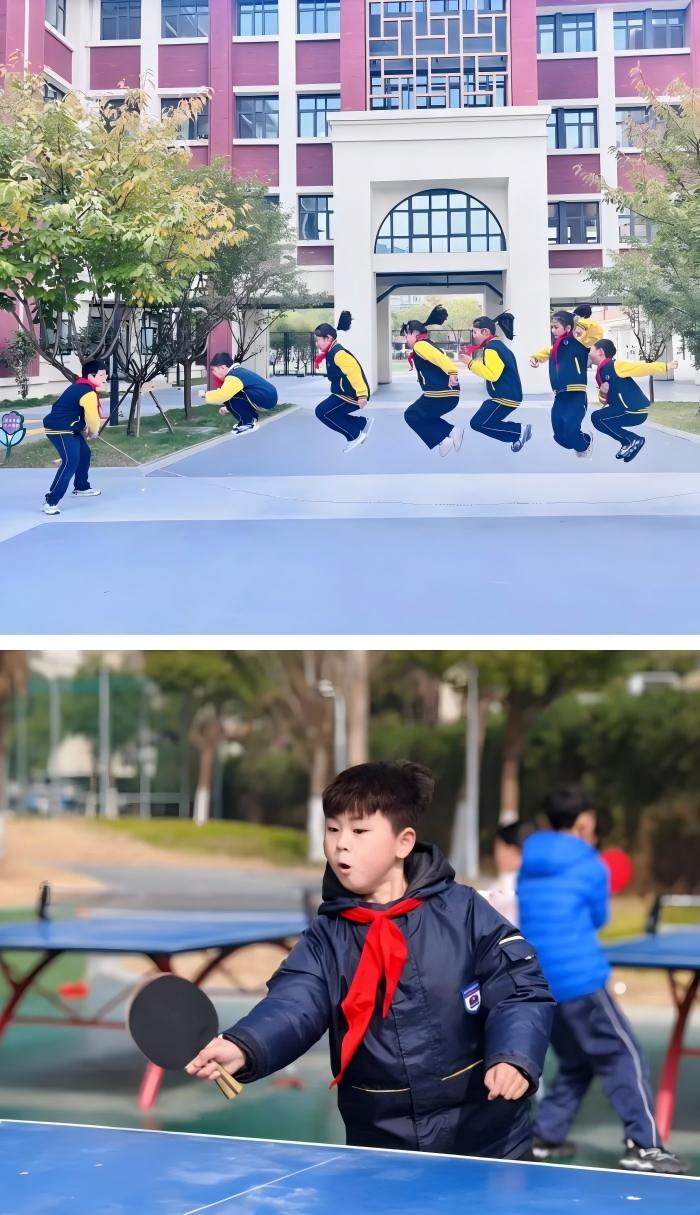 合肥一六八新桥教育集团高刘小学的课间,是动与静的完美交织,丢手绢的彩绳掠过地面,师生围坐成圈,追逐与歌声交织成最动听的童年旋律;跳皮筋接力赛上,一根彩绳翻飞如虹,孩子们单脚跨、双脚蹦,默契协作让快乐加倍;棋艺比拼擂台上,小小少年沉着思考,楚河汉界间尽显沉稳与智慧;三楼读书角里,孩子们捧书静读,书香浸润心灵,静谧中流淌着思想的碰撞;乒乓球、羽毛球接力赛上,银球飞旋、羽球破空,胜负皆欢的拼搏精神点燃赛场热情。