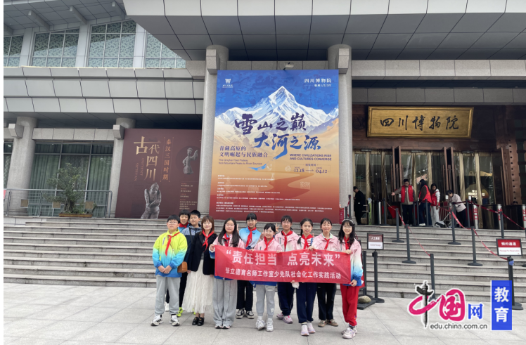 为厚植新时代少先队员的历史文化素养,感悟中华文明源远流长的发展脉络,拓宽现代科学考古的视野,持续培养责任担当意识,4月12日,成都市和平街小学张立区级名师工作室在四川博物院开展了少先队社会化工作实践活动。工作室成员杨姣老师组织队员走进四川博物院,现场聆听兰州大学张东菊教授的《青藏高原的古人类》专题讲座,观看“雪山之巅 大河之源——青藏高原的文明崛起与民族融合”特展,在周末的美好时光,带领“锦江红领巾”开启了一场跨越万年的远古文明探索之旅。