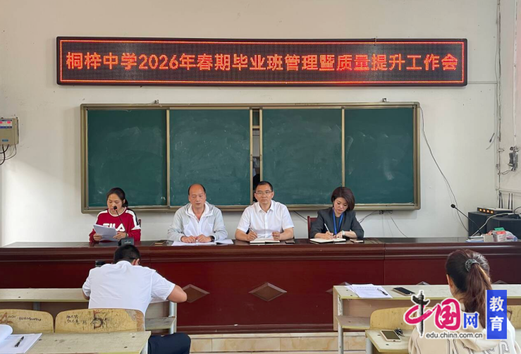 为精准研判毕业年级教学现状,压实备考责任,凝聚冲刺合力,全面提升毕业班教育教学质量,近日,宜宾市江安县阳春镇桐梓初级中学校召开2026年春期毕业年级成绩分析暨毕业班后期管理工作会。会议由分管副校长李弟华主持,全体毕业年级教师及学校领导参会。