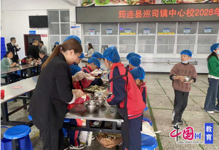 活动现场,食堂专业师傅现场示范抄手调馅、包制、煮制技巧,学生认真观摩、踊跃尝试。在老师与志愿者的耐心指导下,低年级学生动手体验,高年级学生熟练操作,大家分工协作、互帮互助,一个个饱满的抄手在指尖成型。