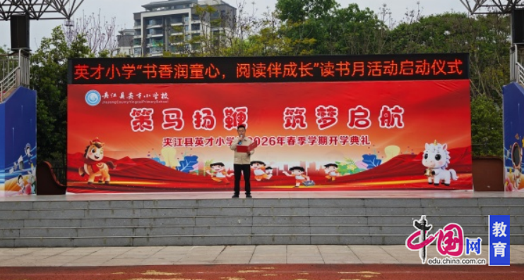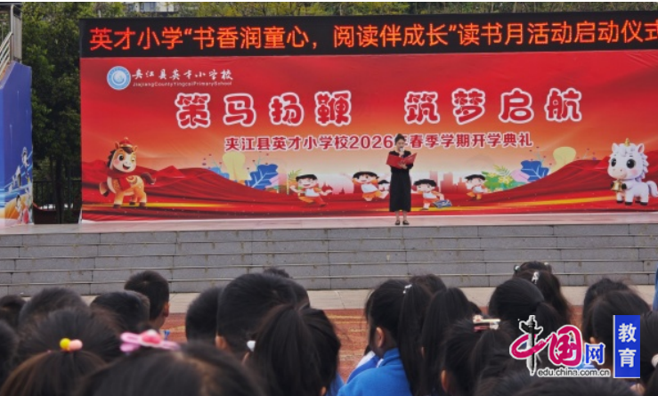 近日,乐山市夹江县英才小学校的操场上洋溢着浓浓的书香气息。全校师生齐聚绿茵场,共同迎来“书香润童心,阅读伴成长”读书月活动启动仪式。一场关于阅读的春日盛宴,在孩子们期待的目光中徐徐拉开序幕。
