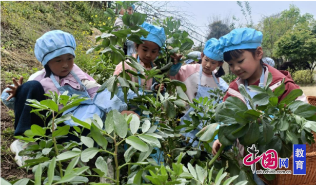 活动伊始,孩子们在泸县福集镇中心幼儿园老师的带领下走进幼儿园的菜园地,化身小小采摘员,亲手摘下饱满的胡豆与鲜嫩的野葱,在泥土的芬芳中感受春日丰收的喜悦,近距离认识农作物生长的奥秘。