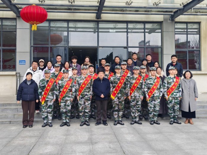 每一次出征,都是一次庄严的承诺。以2025年3月,学校为应征入伍学生举行欢送会为例,副校长田园为入伍同学佩戴绶带并颁发纪念品,以“男儿何不带吴钩,收取关山五十州”勉励学子们在军营绽放光彩。入伍学生代表龚孝锋庄严承诺:“到部队后一定服从命令、刻苦训练,努力成为优秀的人民子弟兵,不辜负学校、家人的期望。”这样的欢送仪式,不仅让入伍学生感受到学校的关怀与期望,更激励着更多在校学子投身军营、报效祖国。