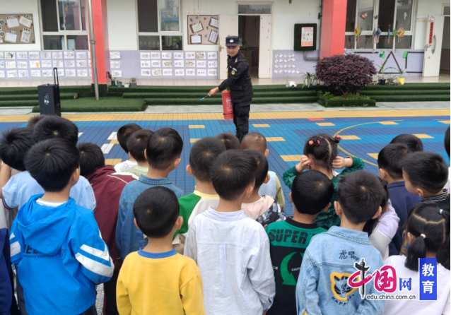 集结完毕,江阳区江北镇中心幼儿园各班班主任及时清点人数并上报。随后,该园安保人员现场演示消防器材使用方法,安办主任细致讲解逃生注意事项与安全常识。