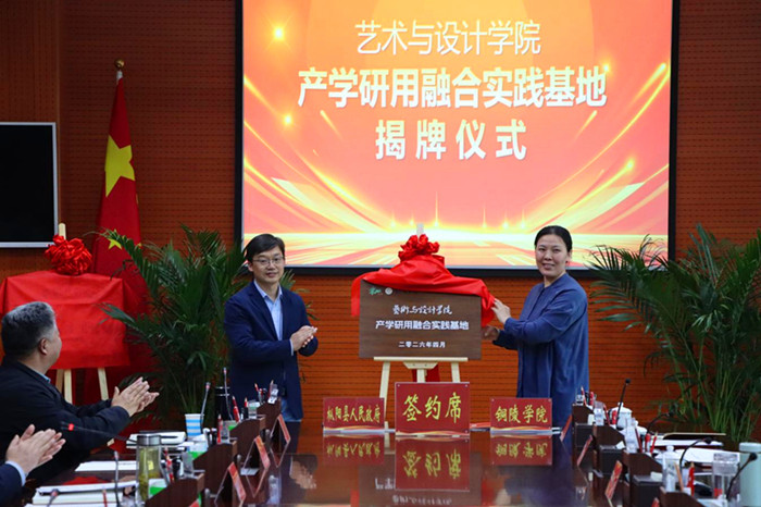 仪式上,吴照明和杨文萍为“铜陵市枞阳县驻铜陵学院青年人才工作站”揭牌,夏美武与廖志远代表双方签署《人才服务战略合作协议》,陈雪为“科技副总”代表颁发《聘书》,陈文明为“艺术与设计学院产学研用融合实践基地”揭牌。