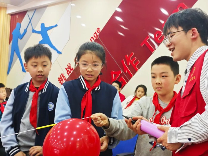 4月17日下午,一场别开生面的科普宣讲志愿服务活动在合肥市习友路小学教育集团新城校区火热开展。来自中国科学技术大学研究生会的志愿者们以“科启童心,星耀中华”为主题,为四年级学生带来了一场融爱国主义教育与科学启蒙于一体的精彩课堂。