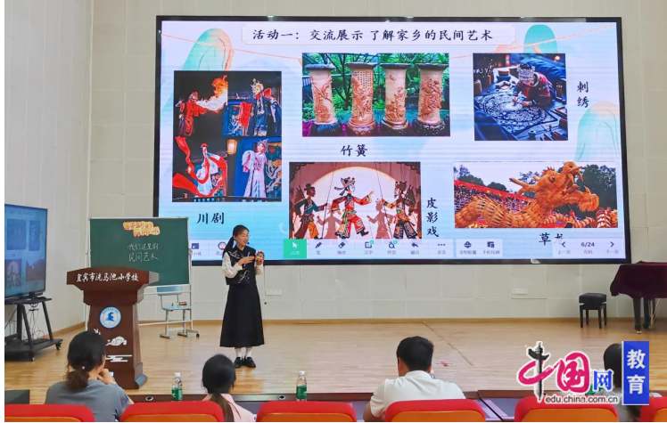 两位参赛教师深耕课堂、匠心备赛,带来两节高质量示范微课。宜宾市洗马池小学校查孟莉老师执教的《多姿多彩的民间艺术》一课,立足家乡文化,通过情境体验、动手实践、艺人故事分享等环节,让学生在感知民间艺术魅力的同时,厚植家国情怀、铸牢中华民族共同体意识,充分体现“以文化人、以美育人”的教学理念。