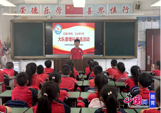 为充实少先队骨干力量,完善大队委组织建设,近日,泸州市江阳区通滩镇中心小学校利用班队课,开展了以“红粱少年志,三心好少年”为主题的少先队大队委增补遴选活动。