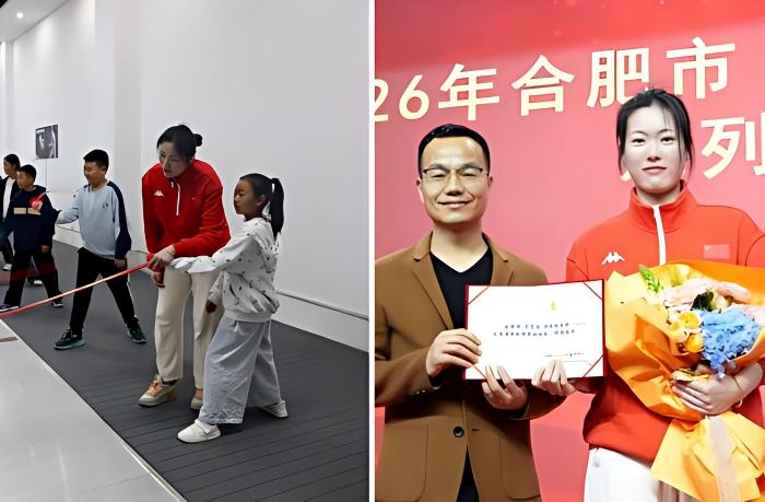 活动期间,全国击剑锦标赛团体冠军、安徽省女子重剑队主力运动员丁雯青,先后走进合肥一六八玫瑰园学校、合肥一六八玫瑰园学校东校。活动现场,丁雯青结合自身训练与参赛经历,分享从初识击剑到斩获佳绩的奋斗历程,讲述克服伤病、突破瓶颈的坚守,传递永不言弃、精益求精、勇于拼搏的体育精神,勉励同学们热爱运动、锤炼意志,将体育精神融入学习生活。