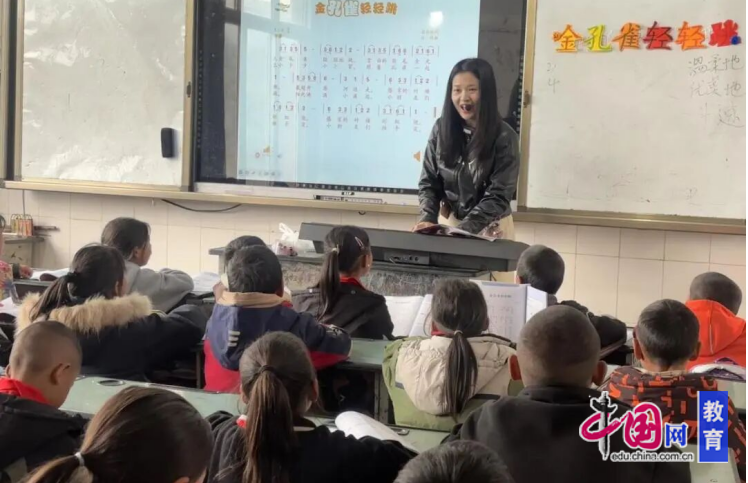 肖啸老师走进三年级音乐课堂,带领孩子们沉浸式徜徉在艺术的海洋。课堂上,他伴着轻快的旋律,引导孩子们感受金孔雀的灵动与优雅,通过优美的歌声、趣味的律动,让孩子们在欢声笑语中感受音乐之美,点亮了乡村孩子的童真美育时光,也在他们心中种下了热爱艺术的种子。