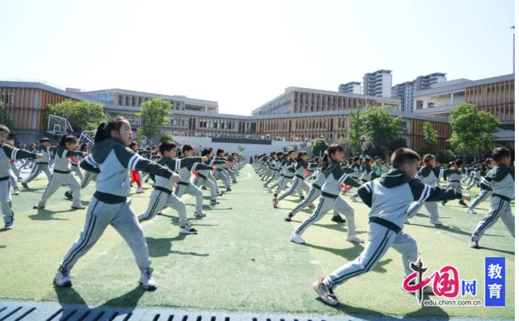 尤为引人注目的是学校国防教育成果的展示。英姿飒爽的国旗护卫队迈着铿锵有力的步伐,护卫着五星红旗,神情庄重,气势昂扬;在随后的国防大课间展示中,学生们队列整齐划一,动作刚劲有力,精气神十足,全面呈现了学校将国防教育融入日常实践、锤炼学生意志品质的显著成效。