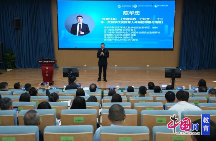 如何实现从小学到中学的贯通式培养,是教育界长期关注的重要课题。成都市郫都区博瑞实验学校校长陈华忠以《贯通培养·行知合一:十二年一贯制学校实践育人体系的构建与落地》为题,分享了该校构建的目标、课程、实施、评价、保障“五位一体”贯通育人生态。该体系遵循学生成长规律,实施分层进阶教育,通过项目化学习、跨学段师生共同体建设等实践路径,让行知思想贯穿十二年育人全过程,为区域内贯通式培养提供了鲜活的实践样本。