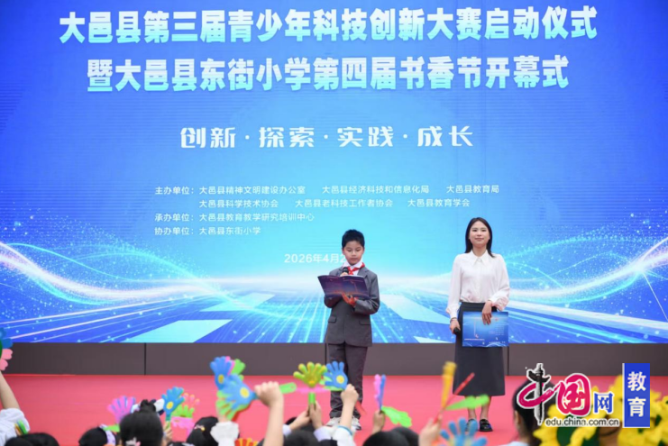 春风送暖,书香满园;科创筑梦,智启未来。4月20日,成都市大邑县第三届青少年科技创新大赛启动仪式暨大邑县东街小学第四届书香节开幕式在东街小学举行。本次活动以“创新·探索·实践·成长”为主题,旨在通过各种实践活动,激发青少年的科学探索热情,提升学生的人文与科学综合素养。
