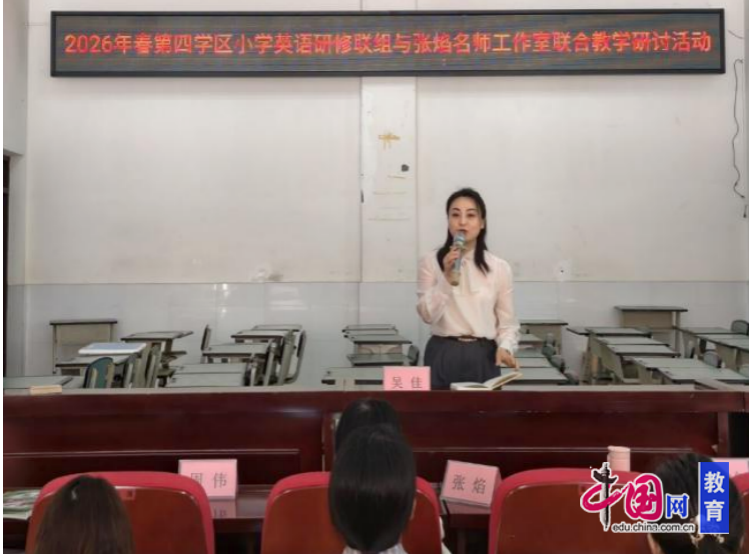 为切实推动翠屏区义务教育第四学区小学英语教育高质量发展,充分发挥名师工作室示范引领与辐射带动作用,深化校际教研交流,助推课堂教学提质增效,4月17日,宜宾市翠屏区义务教育第四学区2026年春期英语教学研讨暨张焰名师工作室送教活动在翠屏区牟坪镇中心小学校成功举办。翠屏区张焰名师工作室成员、第四学区(小学)部分英语教师共同参与此次活动。