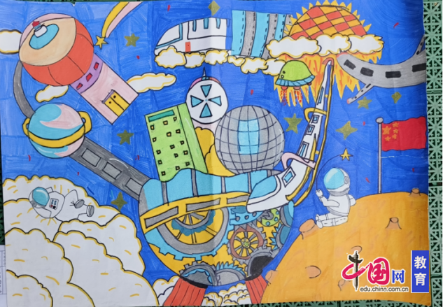 绘画盛宴:少儿科幻画脑洞大开,画纸上满是奇思妙想,国画、水彩、线描等形式多样,既有传统文化韵味,又有少年天马行空的创意。