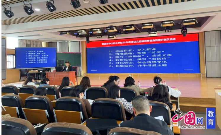 春风沐杏坛,研思向新行。为深化课堂教学改革,推动教师专业成长,精准对标新课标理念,扎实推进“三段五环”人文课堂教学模式深度实践,近日,宜宾市中山街小学校语文组开展“学名师课堂,悟课标内涵”寒假自我提升展示活动,全体语文教师齐聚一堂、共研共进。