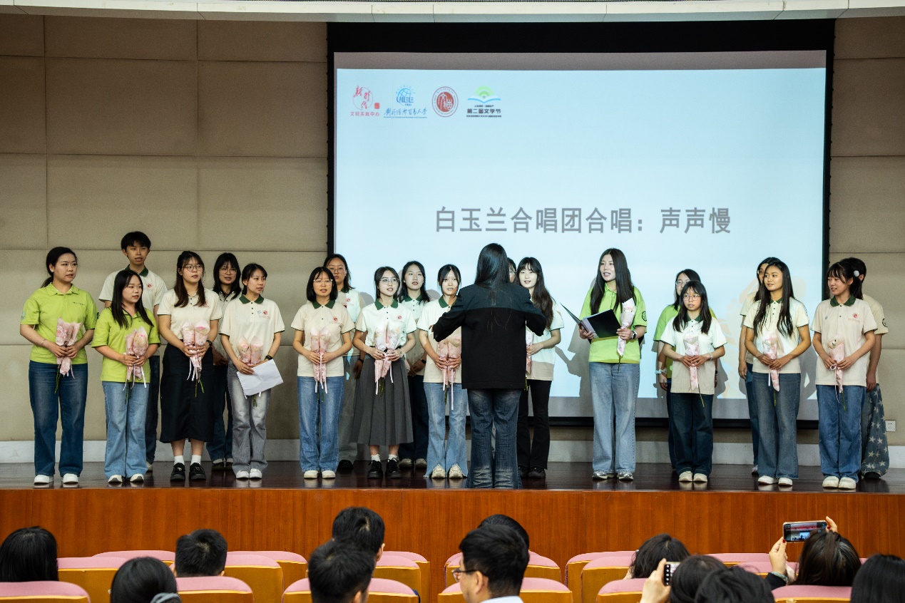 文学与国际传播学院白玉兰合唱团在第二届文学节表演《声声慢》