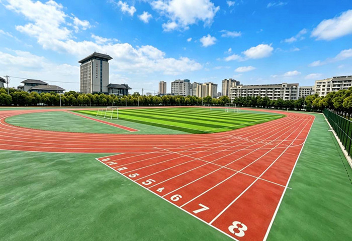 此次认证的背后,是铜陵学院对体育设施建设的严苛要求。该运动场地改造全程遵循国家核心标准,所有材料均持《检测报告》;塑胶跑道采用13mm厚全塑型自结纹塑胶(加厚区20mm),无缝铺设且减震耐磨,达到生态产品五星级标准;足球场铺设50mm人造草坪及减震垫层,兼顾专业性与防护性;围网、照明等配套同步升级,新建4座15米高杆灯,满足夜间使用需求;解决场地积水难题,全方位守护运动安全。