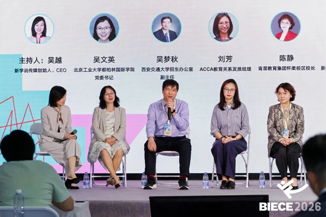 “新高考·多元升学与生涯发展”分论坛聚焦新高考背景下的多元升学路径与生涯规划,邀请来自高校招生、教育评价、中外合作办学等领域的专家,带来兼具政策深度与实践价值的分享。中国教育发展战略学会教育评价专业委员会副秘书长江爱萍探讨AI时代下多元升学路径选择;西安交通大学招生办公室副主任吴梦秋解读强基计划与拔尖创新人才培养;北京工业大学都柏林国际学院党委书记吴文英聚焦中外合作办学的国际化与本土化融合,分享中国同频的国际化教育实践。ACCA、青苗教育集团等机构围绕打破专业信息差、新时代国际化升学路径规划展开主题演讲。在圆桌对话环节,嘉宾们以“生涯布局前置,破解家庭升学焦虑”为主题展开对话,为家长和学生提供可落地的升学规划思路。