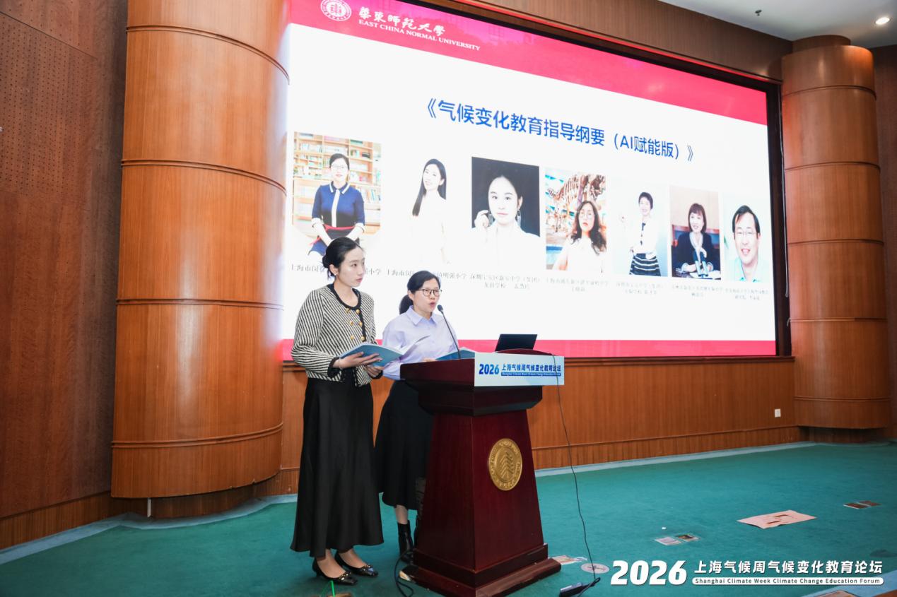 上海市闵行区七宝镇明强小学科创部副主任蔡亚男、师训部副主任程育艳共同发布《气候变化教育指导纲要(AI 赋能版)》