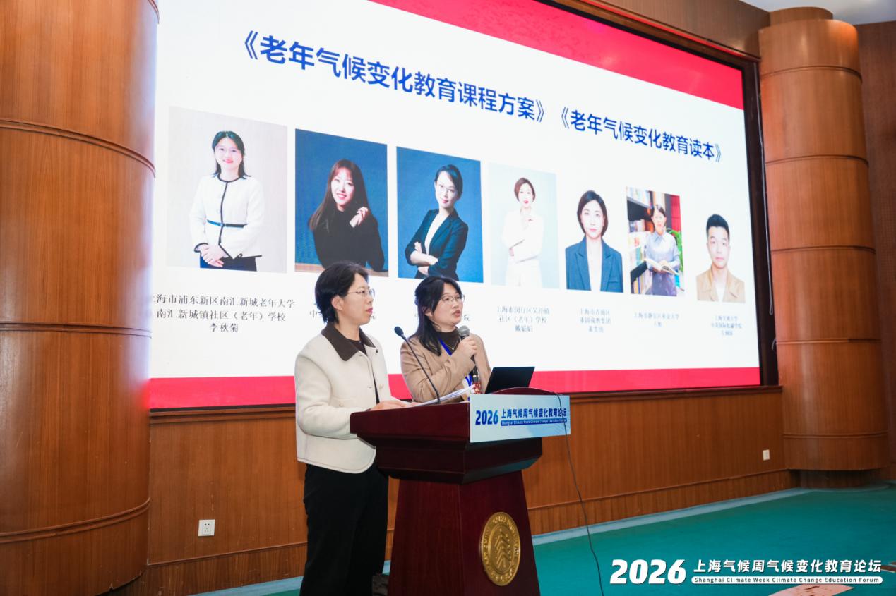 上海市浦东新区南汇新城镇社区(老年)学校校长李秋菊、上海市静安区业余大学老年教学部主任王旭联合发布《老年气候变化教育课程方案》《老年气候变化教育读本》